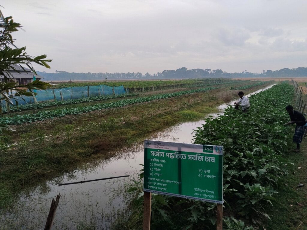 In southern coastal Bangladesh, where aman rice is the primary crop, there is a significant need for crop intensification through diverse cropping systems. Implementing short-duration aman rice varieties can facilitate earlier harvests, creating opportunities for subsequent crop cycles. However, there are challenges associated with these short-duration varieties in the region. Additionally, cultivating less water-intensive crops such as groundnut, mungbean, maize, and sunflower provides a viable strategy to enhance production during the rabi season. These crops are not only more resilient to salinity and water shortages but also offer greater economic returns. Establishing water reservoirs can help store monsoon runoff for supplemental irrigation, which mitigates dry-season water scarcity. Furthermore, sorjan (raised bed) systems enable vegetable cultivation on elevated beds while utilizing trenches for fish, optimizing land use in waterlogged and saline areas.