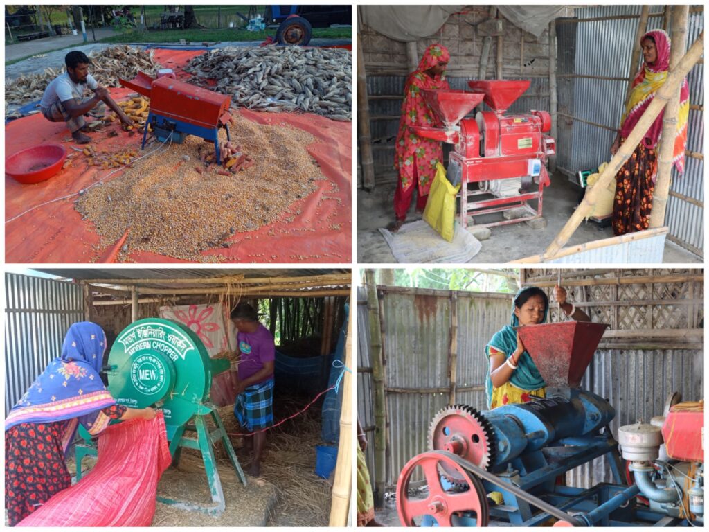 IRRI Bangladesh, through the CGIAR science program, has been working on rice and homestead-based mechanization. In northern Bangladesh, IRRI has focused on mechanized rice transplanting and mechanized direct seeded rice. As part of its homestead mechanization activities, IRRI has provided over 80 small agricultural machines, including fodder choppers, mini rice husking mills, oil extractors, and maize shellers, to both young men and women. The adoption of small agricultural equipment can enable youth to engage more actively in farming. This change not only enhances their participation in agricultural activities but also creates new chances for the family to generate income.