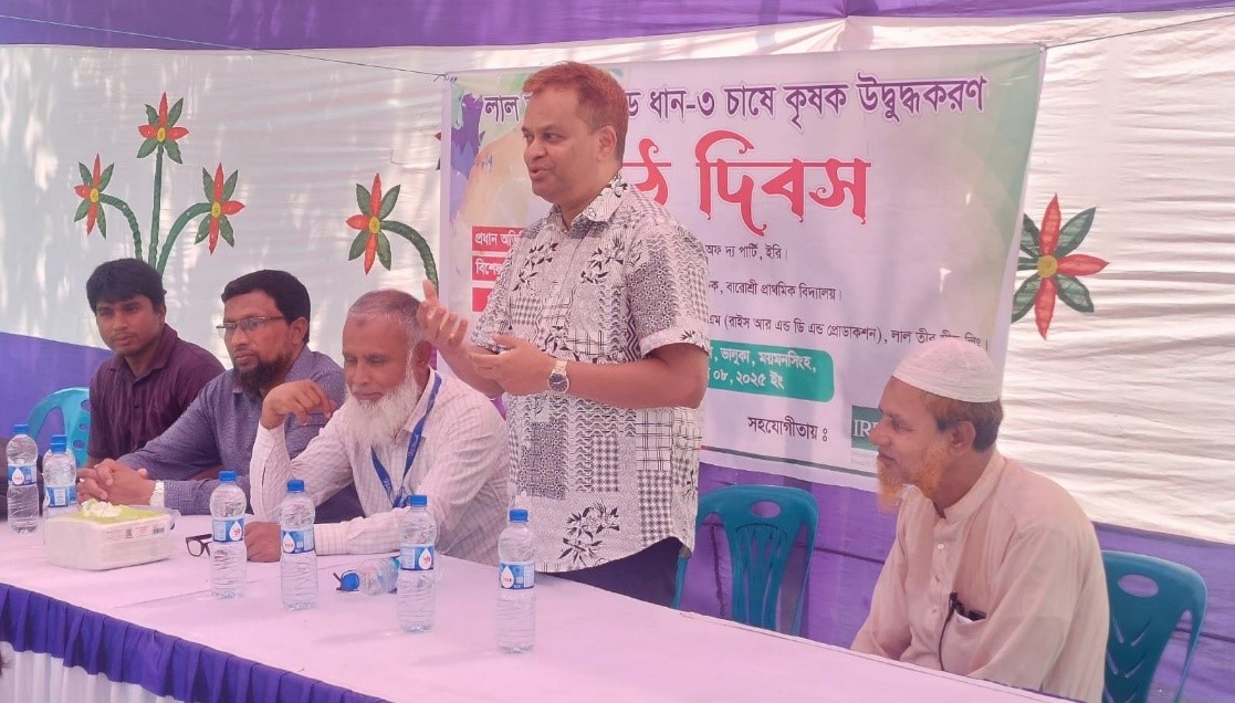 In Bhaluka, Mymensingh District, farmers observed Lal Teer Hybrid dhan3’s attractive medium fine grain, uniform pannicle structure (18–24 cm), and spikelet number (180–210). Dr. Md. Alamgir Hossai, LTSL General Manager for Rice, remarked that, “Our partnership with IRRI is validating our pipeline with real-time farmer feedback. The Bhaluka event will guide our next distribution strategy.”